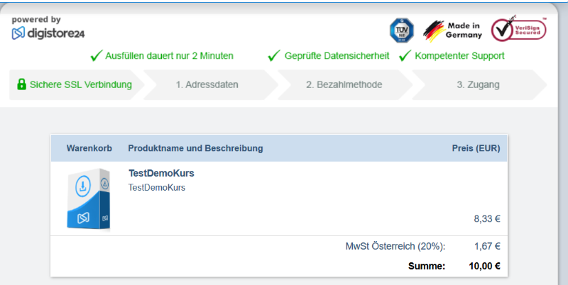 6. Digistore24 Testbestellung durchführen