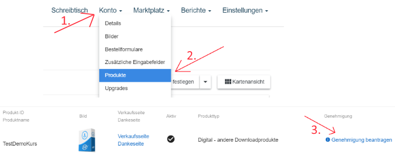 9) Produkt von Digistore24 genehmigen lassen. Nur genehmigte Produkte kannst du auch tatsächlich verkaufen. Bei nicht genehmigten Produkten kannst du bloß Testkäufe durchführen. Um einen Testkauf durchzuführen, musst du übrigens bei Digistore24 eingeloggt sein.