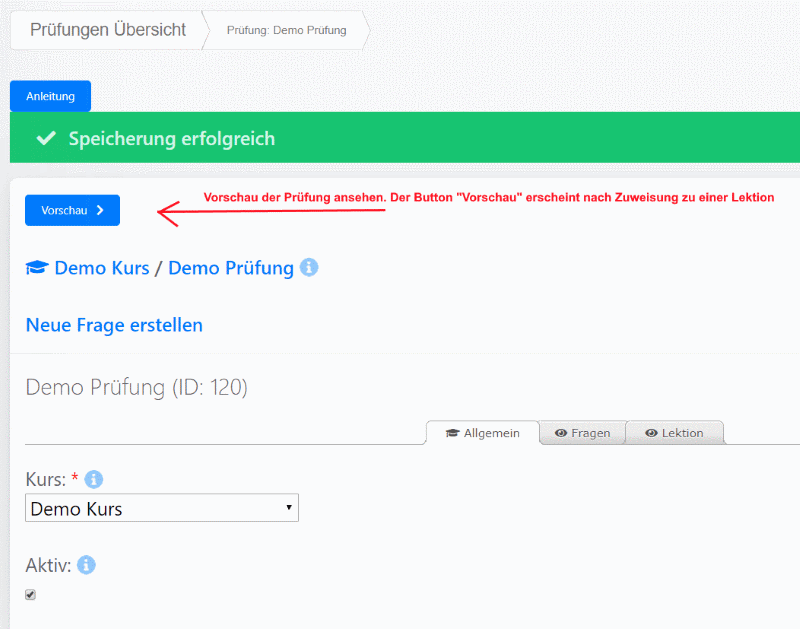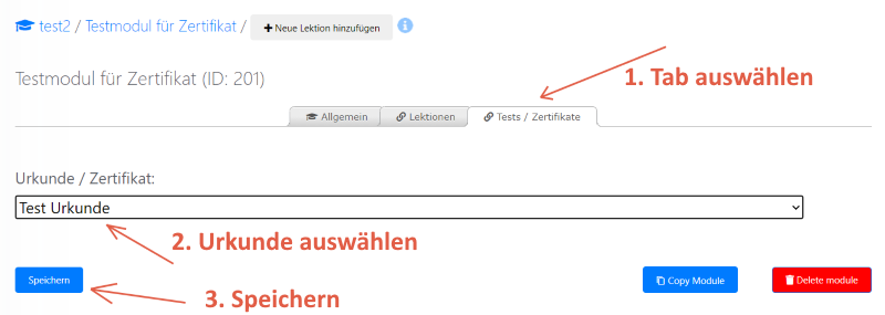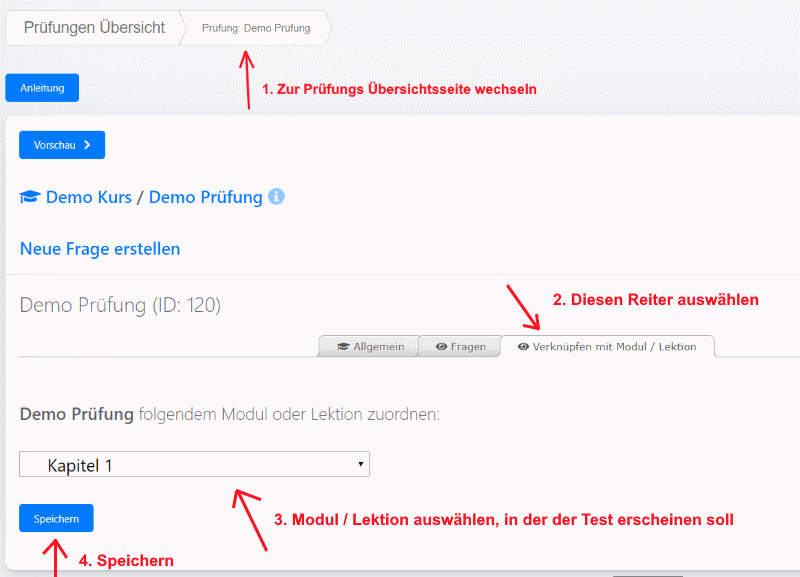 Test mit Modul / Lektion verknüpfen