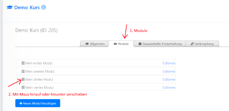 Module und Lektionen sortieren