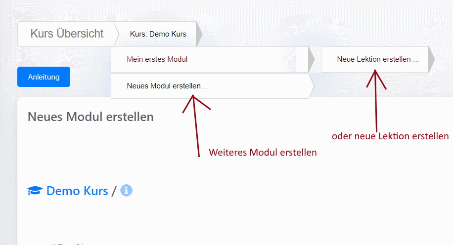 Module und Lektionen erstellen